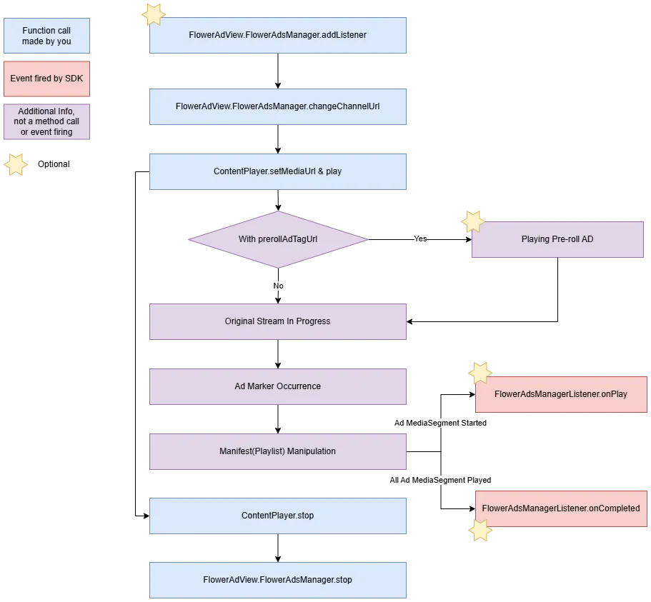 이 SDK는 시청자가 Live HLS/DASH 콘텐츠에 진입했을 때 광고를 재생하거나, 광고 마커를 사용하여 재생목록 매니페스트(m3u8 또는 mpd)를 가공하여 대체 광고를 삽입할 수 있습니다.